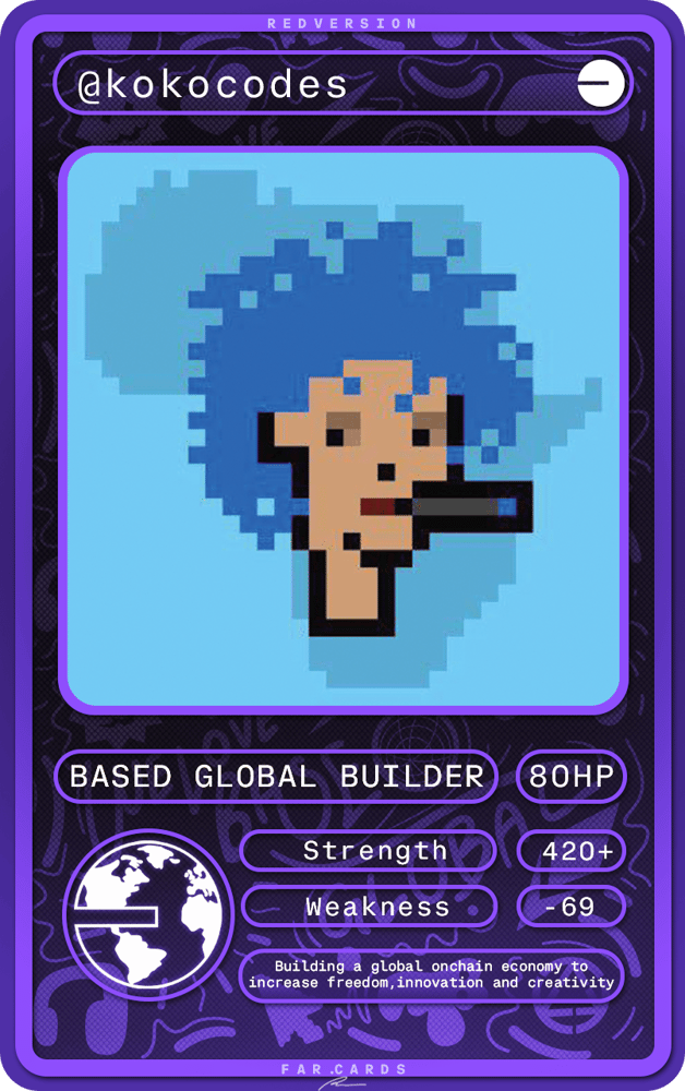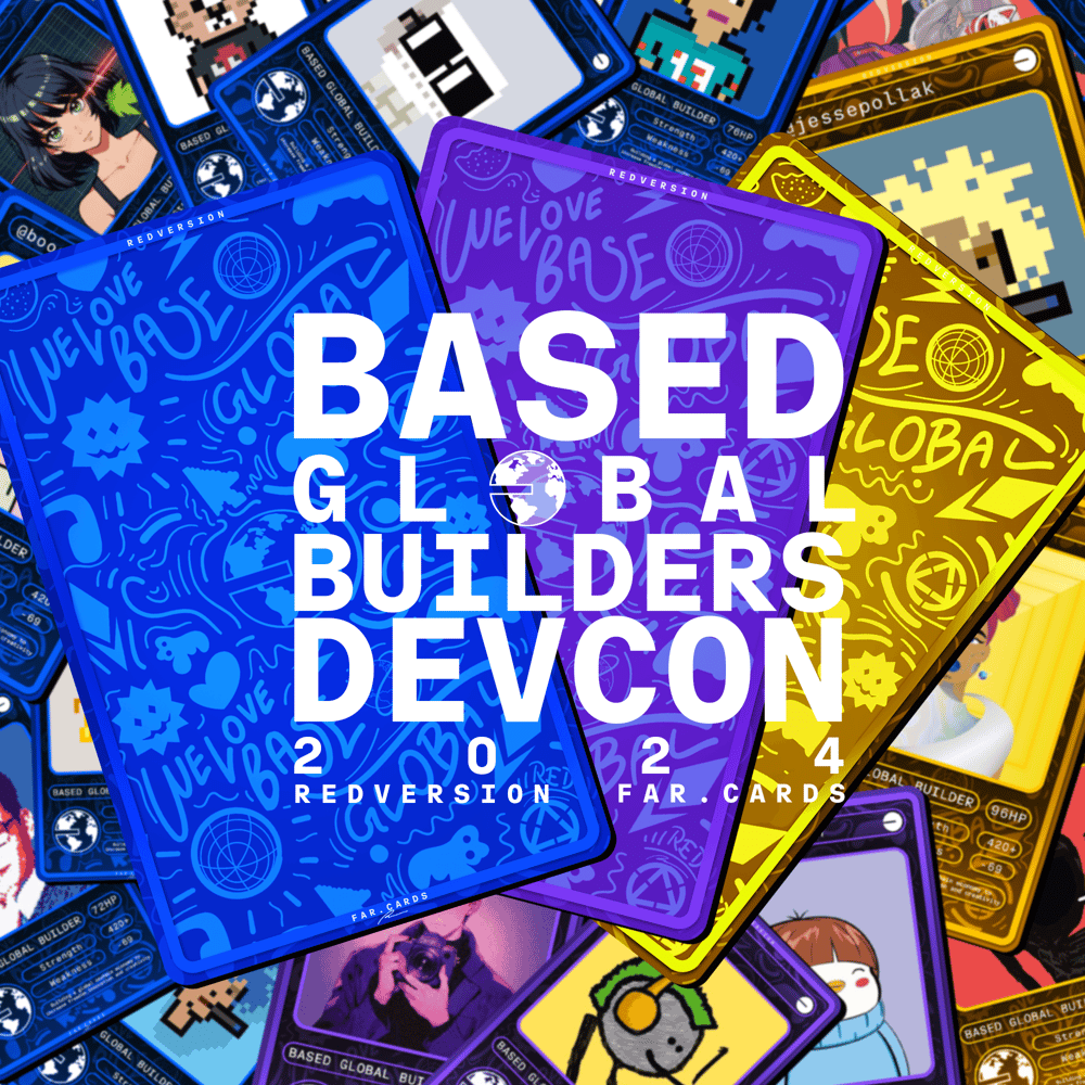 BGB DEVCON 2024 is a limited-edition series of IRL cards celebrating our dedicated Based Global builders anticipated at Devcon 2024. This project is a collaborative creation by FarCards and RedVersion, featuring designs crafted by @RedyKay.